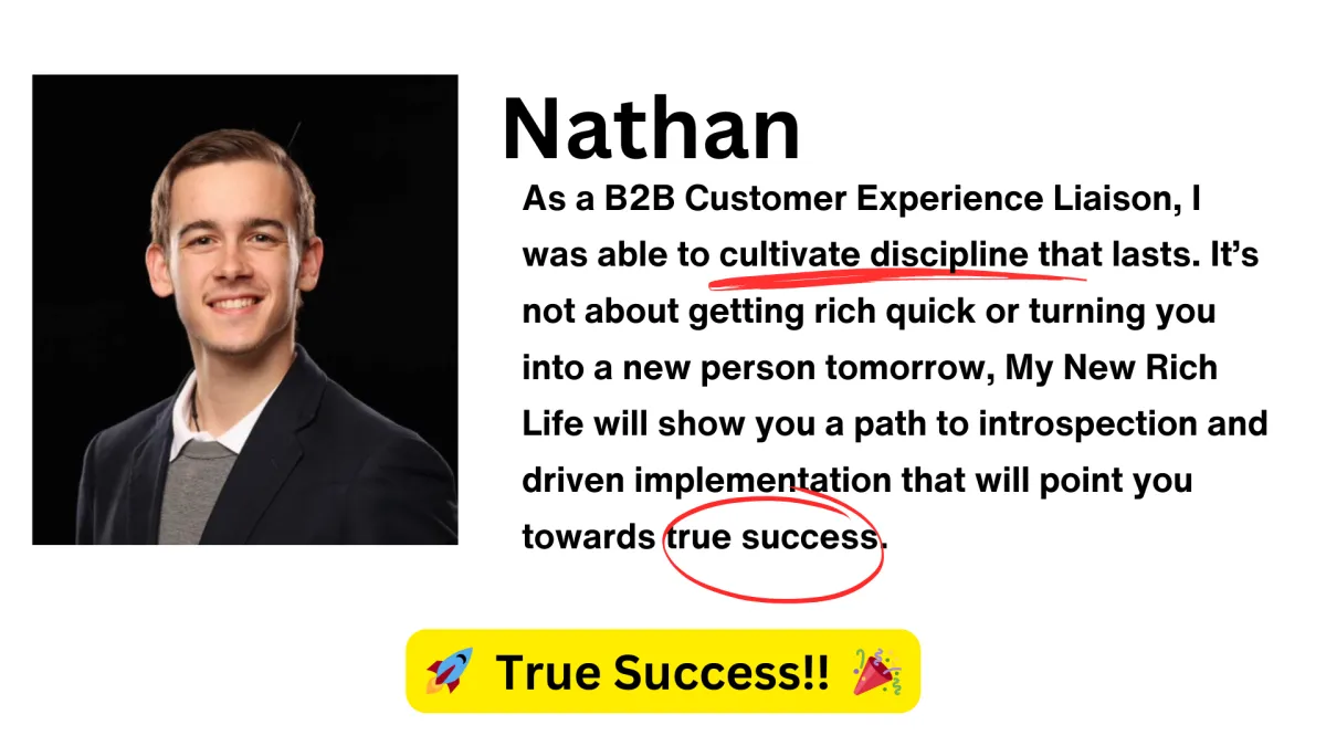 ✅ A community of winners implementing the New Rich Life system together AND access to myself + my team for support...